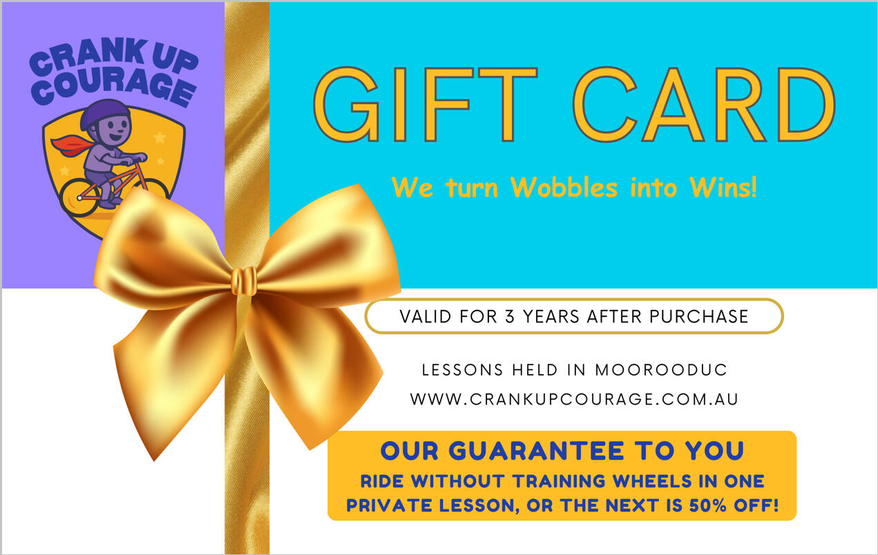 ⭐⭐⭐⭐⭐ "Graham has created a fantastic program, Cranked Up Courage. Our 8yo son was struggling with having the confidence of taking that final leap of riding his bike with no training wheels and having to have someone to run along with him. Graham had him riding all by himself within 10mins. This program is truly amazing and highly recommended to give your children that confidence that will see them riding for the rest of their days!"